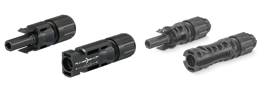 Staubli社 純正のMC4とEVO2を通常在庫しております。MC4 は1000vに対応、EVO2は1500vに対応しております。